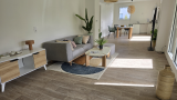 Dans une petite copropriété aux fabiles charges, cet appartement, sans travaux, est composé d'une entrée avec placard intégré, menant à une vaste pièce de vie lumineuse grâce à sa double exposition. Le coin cuisine et le salon/séjour s'ouvrent sur une terrasse couverte, accessible par trois portes fenêtres..